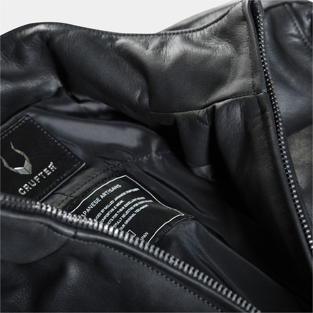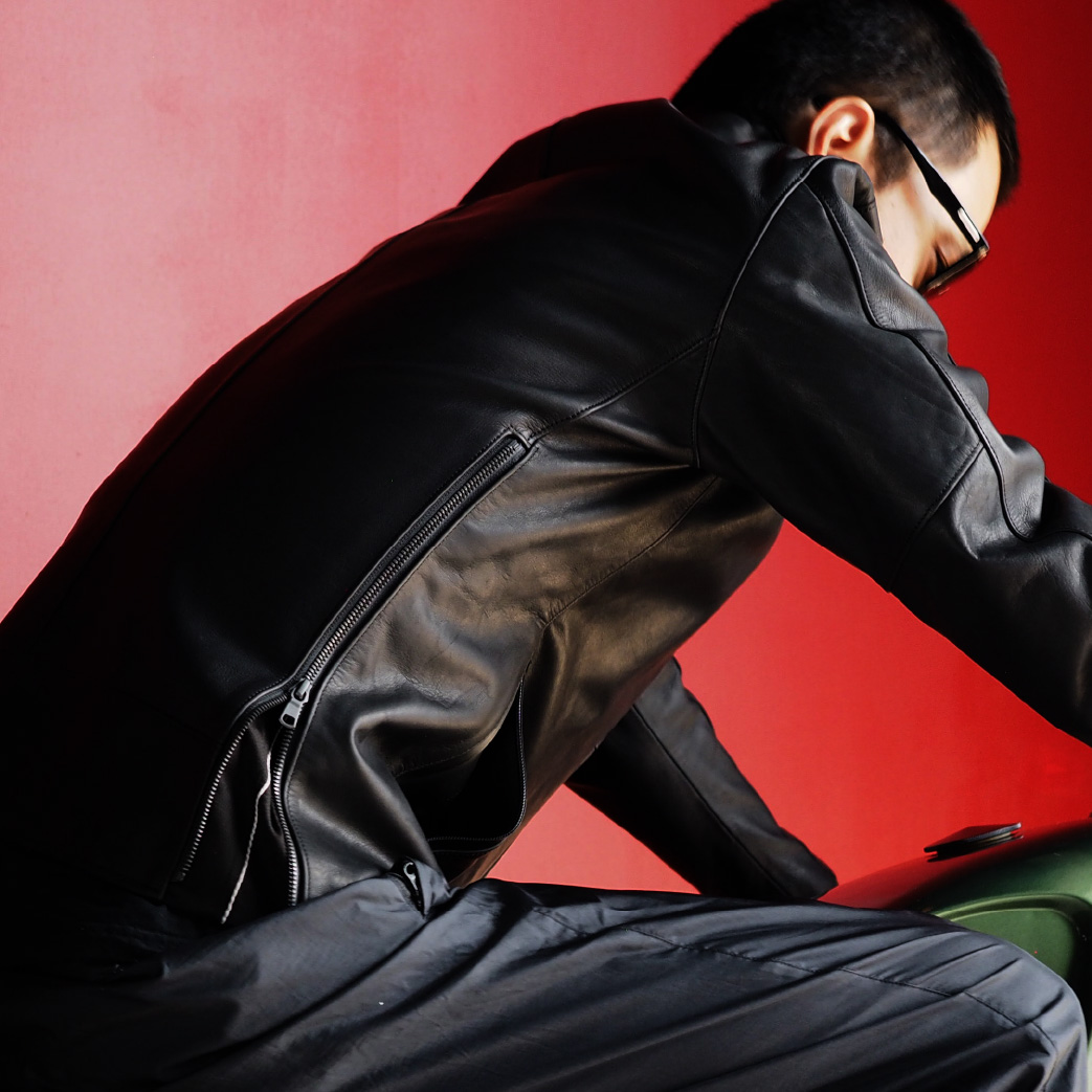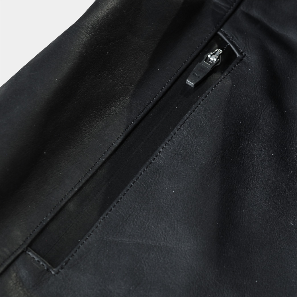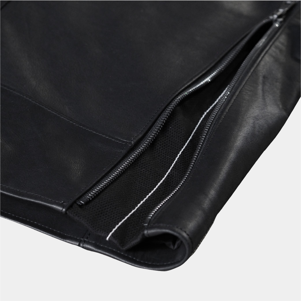 ※汎用品プロテクター装着可(肩・肘・背中)Material : 国内ステアハイド / クローム鞣し※ステアハイド…生後3~6ヶ月の間に去勢した2歳以上の雄牛の革。厚みが均等で柔らかく強度のある革質。※クローム鞣し…革が柔らかく変色が控えめでメンテナンスを頻繁に行う必要がありません。比較的水に強くシミができにくいのが特徴。