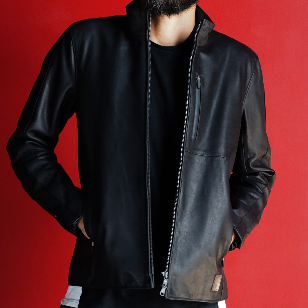 ショルダーからアームに入ったシングルラインが特徴的。 一般的なライダースより丈が長めのため気軽に羽織っても様になるデザイン。カジュアルかつスポーツミックスなスタイルは幅広い年代の方に着用いただけます。上向きに取り付けたリストジッパーがアクセントになりタンクの傷防止にも。高品質なフルグレインレザーを使用。 脱着可能な専用プロテクターが装着でき安心・快適なライディングが楽しめます。体型・ライディングポジションに合わせサイドジップでウエスト周りの調整可能。